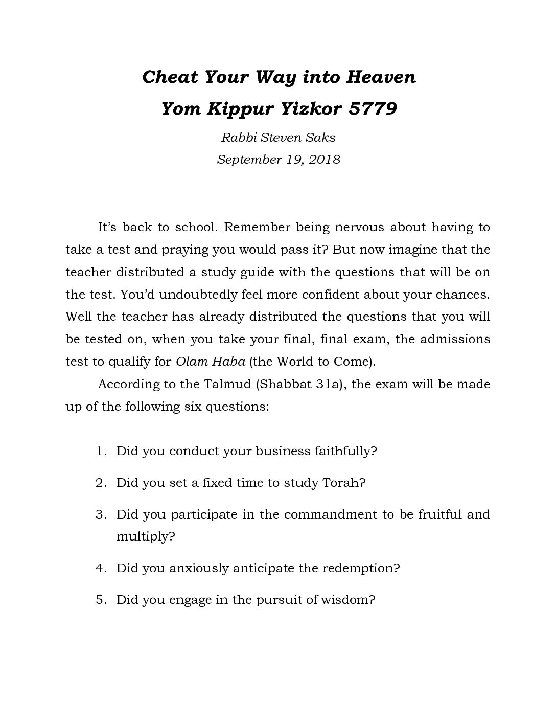 Disclaimer: The opinions expressed here are that of the writer and do not necessarily represent the views of the Union for Traditional Judaism, unless otherwise indicated.